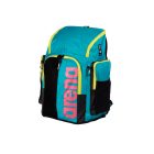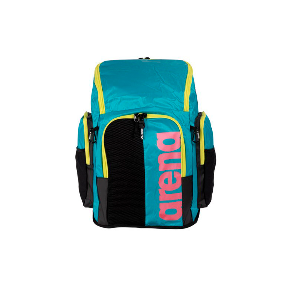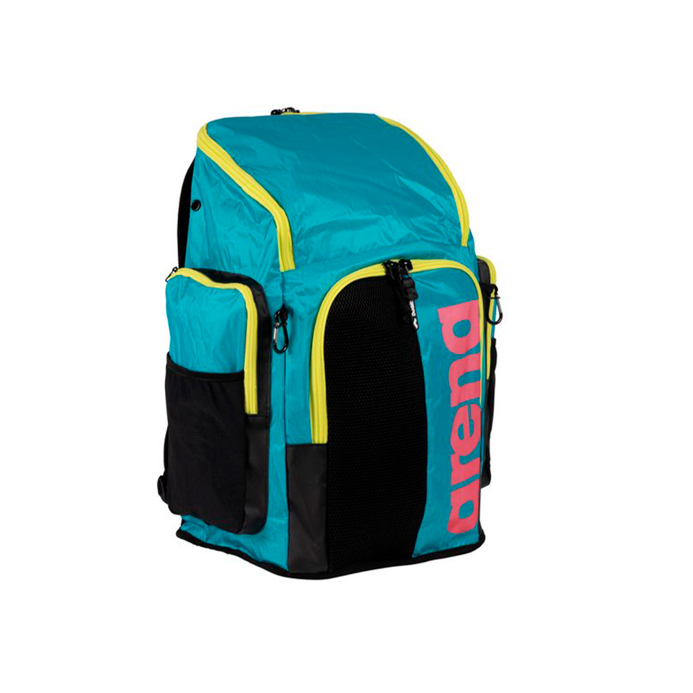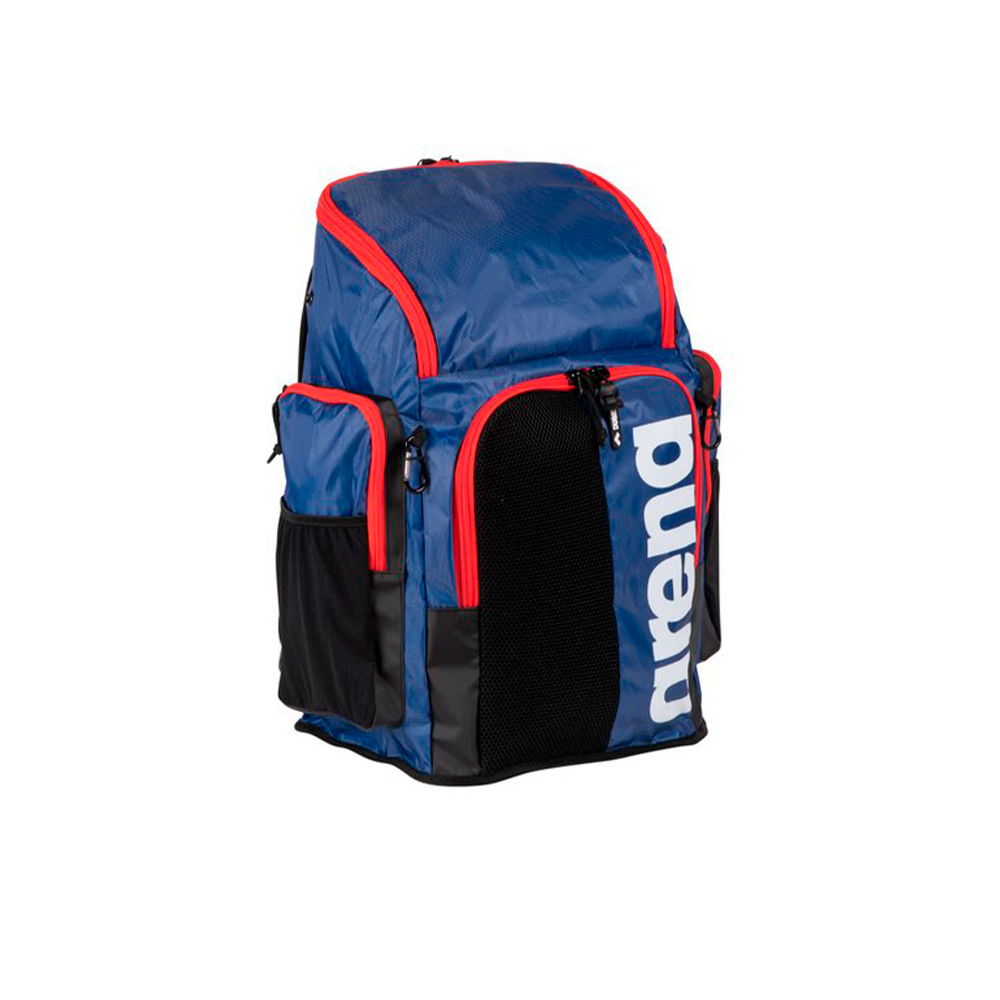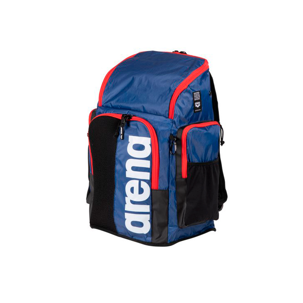 Современный рюкзак итальянского бренда Arena, пришедший на замену знаменитой модели Team 45. Отличительные особенности. Данная модель отличается огромной вместительностью. Благодаря этой особенности спортсмен может иметь под рукой все необходимые аксессуары. Рюкзак выполнен из 2-х отделений: Первое отделение представляет собой объемное пространство, которое можно заполнить различными атрибутами, дополнительный большой карман для папок расположен в спинке основного отсека, также имеется маленький карман для мелочи; Второе отделение наполовину выполнено из сетчатой дышащей ткани и водонепроницаемого материала, которое прекрасно подойдет для обуви или мокрой одежды. Наличие боковых карманов с замком и сеточек для воды позволит грамотно распределить мелкие аксессуары. По бокам расположено 2 карабина-крючка благодаря которым можно зафиксировать мелкие вещи, чехол и другие предметы. Дно рюкзака выполнено из полиуретана, благодаря которому рюкзак не будет промокать на мокрой поверхности. В комплекте с рюкзаком идет специальный мешочек для мокрых вещей. Сочетание прочной водостойкой ткани и мягких ремешков позволит оценить все удобство транспортировки рюкзака.