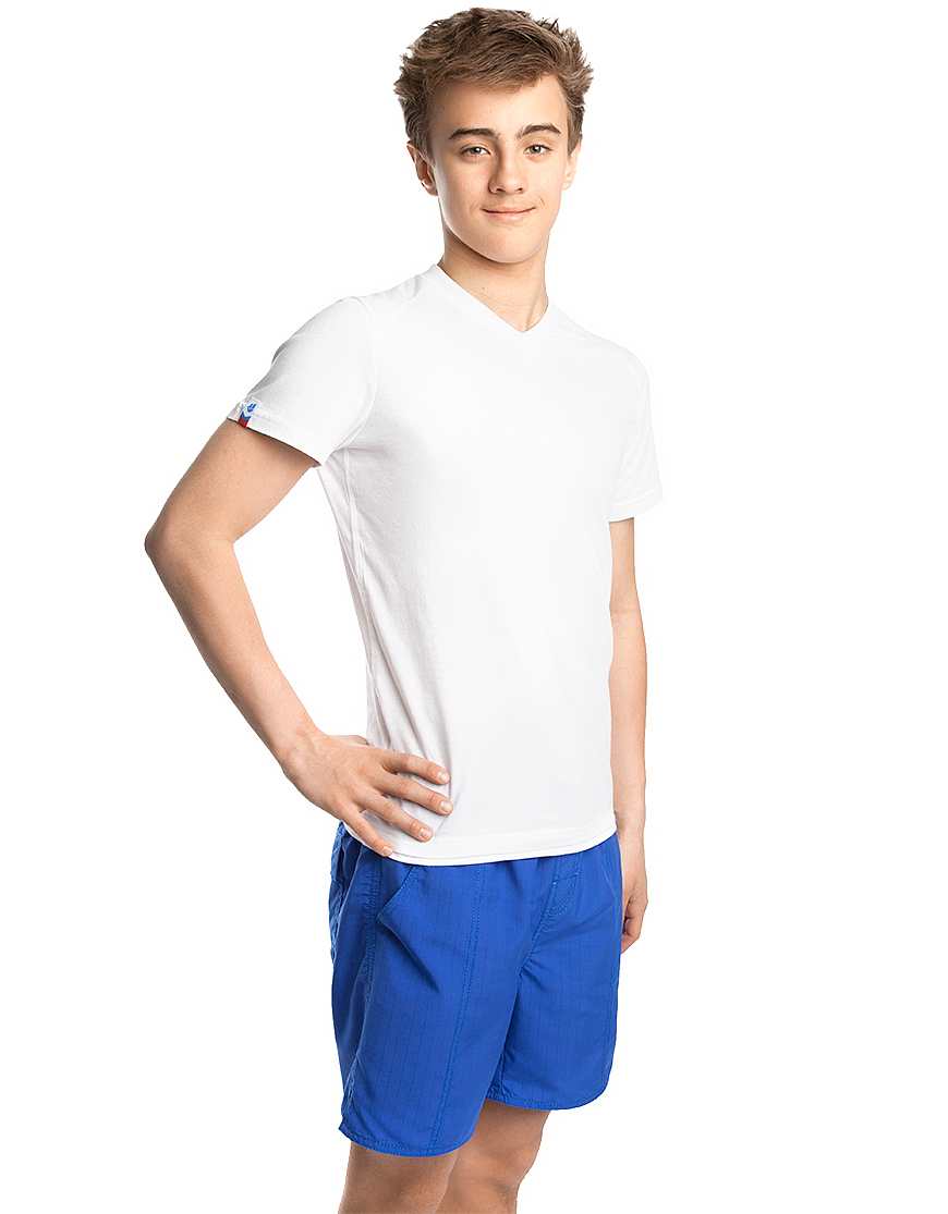 Юниорские плавательные шорты на резинке, внутри шнурок. Спереди и сзади карманы. Внутри сетчатые плавки. Ткань Rib-stop позволяет шортам быстро сохнуть. Длина бокового шва 38 см.