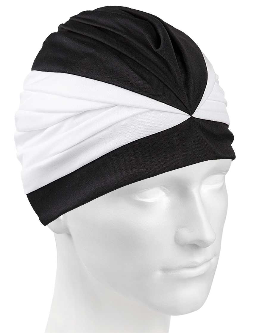 Шапочка для плавания из полиэстера с застежкой. Непромокаемый материал позволяет не мочить волосы во время плавания.